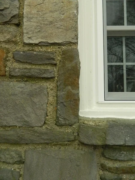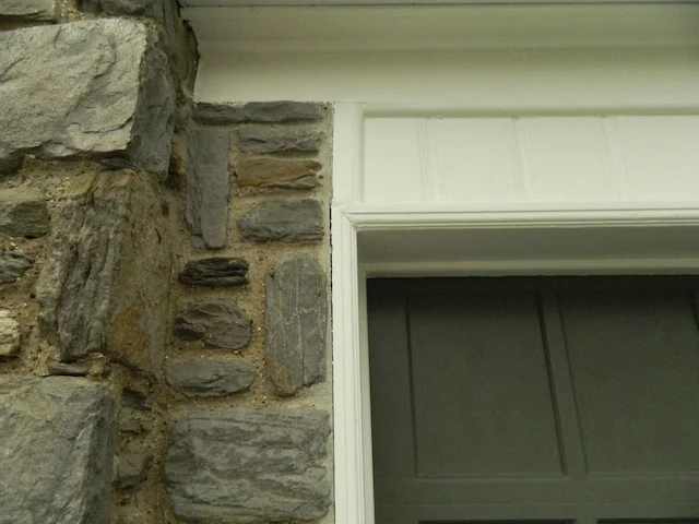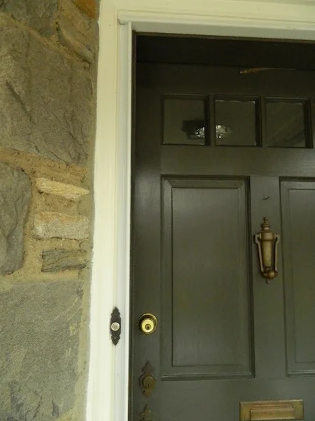 The door color was chosen by pulling out a dark grey green tone also found in the stonework...
