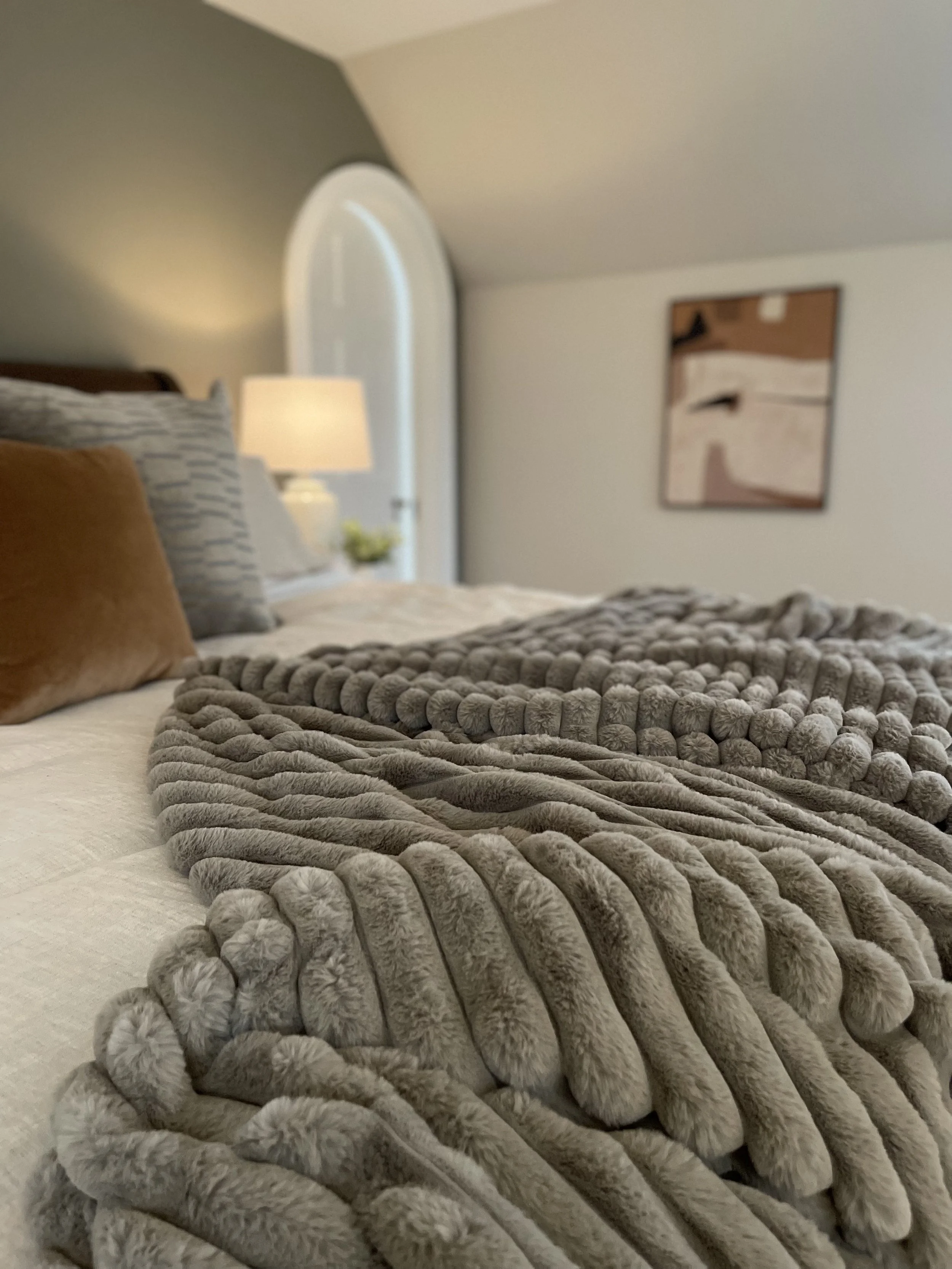 Add texture, such as a fluffy, warm throw blanket or soft pillows to your living space to make it more comfortable and inviting.