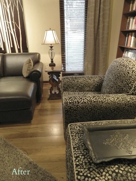 A chair that the family loved was brought in from another part of the house--a welcome addition, since it was so comfortable--but it would need a facelift as a part of the room's revitalization.