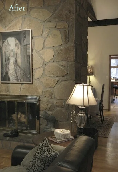 The whole downstairs was painted in a new brighter neutral that brings out the color in the stone, and makes the rooms flow beautifully--especially since they are so open to one another.