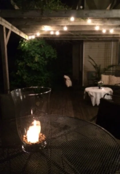 I feel very blessed since I now have two places--one right outside my front door, and one outside my kitchen door--that beckon to me to come outside and sit awhile, each with their own little garden that I enjoy whether I am sitting there or simply walking to my car on my way to an appointment. The small beds are easy to tend to, and I have other things that delight me in the spaces too--like a bird feeder that attracts all kinds of feathered friends, or twinkle lights and candles that I can light in the evening. Heaven.